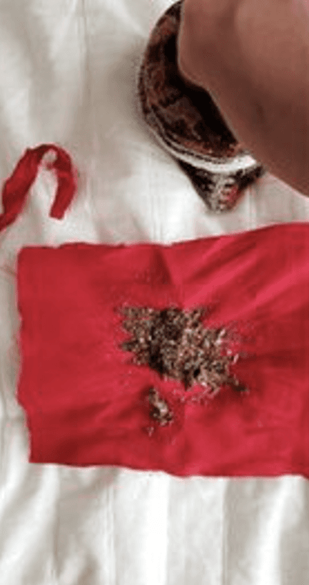 The tobacco is placed at the center of the cloth.